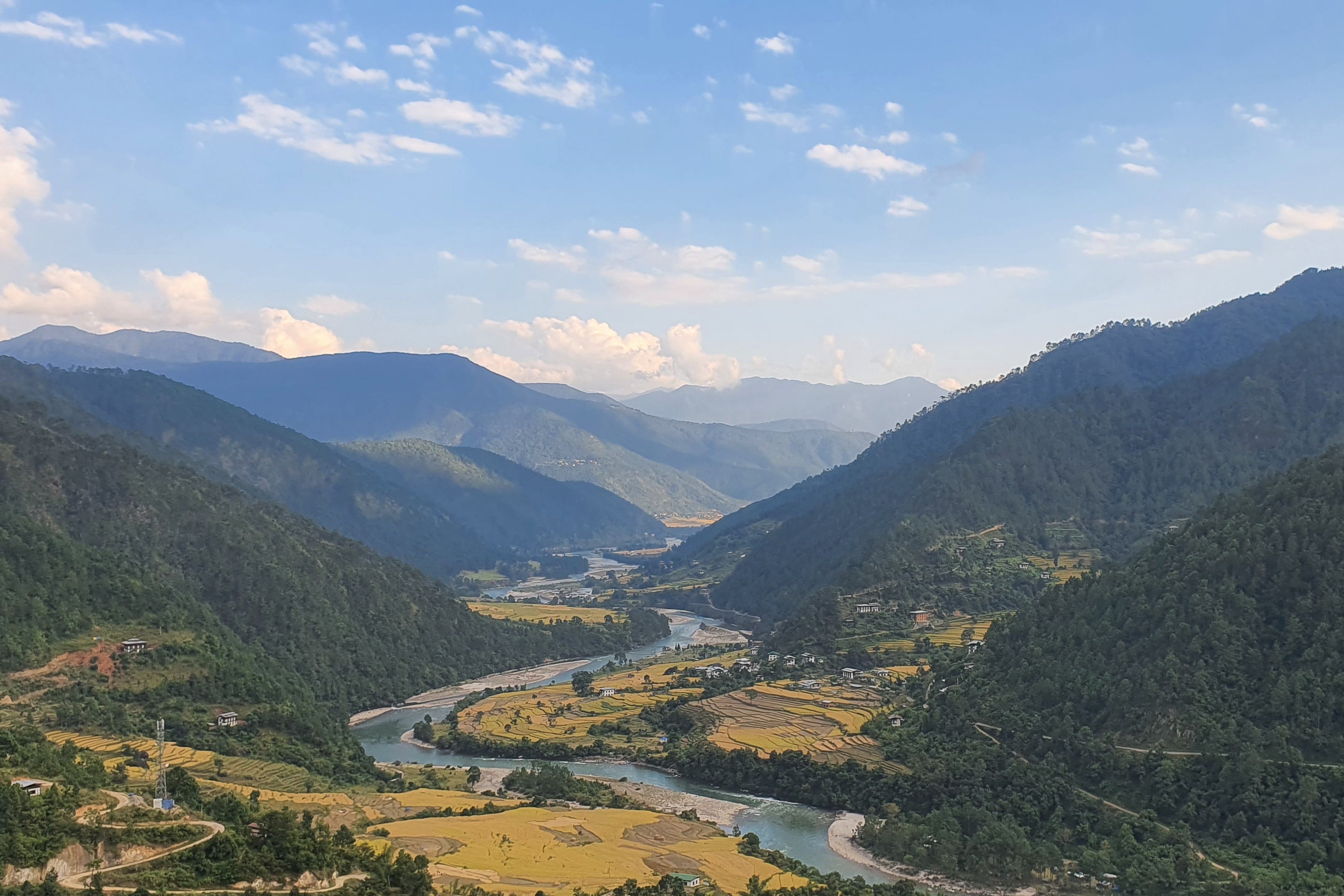 Upon arrival at Paro Airport (7,000 ft), you will be warmly welcomed and transferred to Thimphu, the capital of Bhutan. The drive offers beautiful views of the Paro and Thimphu valleys. Thimphu, located at over 2,500 meters above sea level, lies in a fertile valley crossed by the Wangchu River.