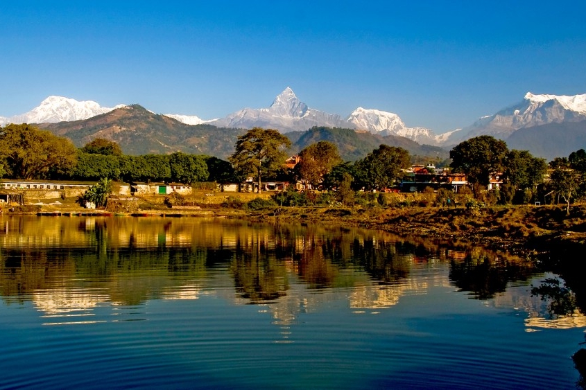 Pokhara, the second largest city of Nepal located 220 km/827 Mt., west of the capital. It is home to Gurkha soldiers. The Annapurna Range with three out of the ten highest mountains in the world — Dhaulagiri, Annapurna I and Manaslu are within approximately 15 – 35 miles of the valley. Due to its proximity to the Annapurna Mountain range in the Himalayas, the city is the gateway of famous Mustang trekking, Mount Annapurna Circuit trail and Jomsom – Muktinath,