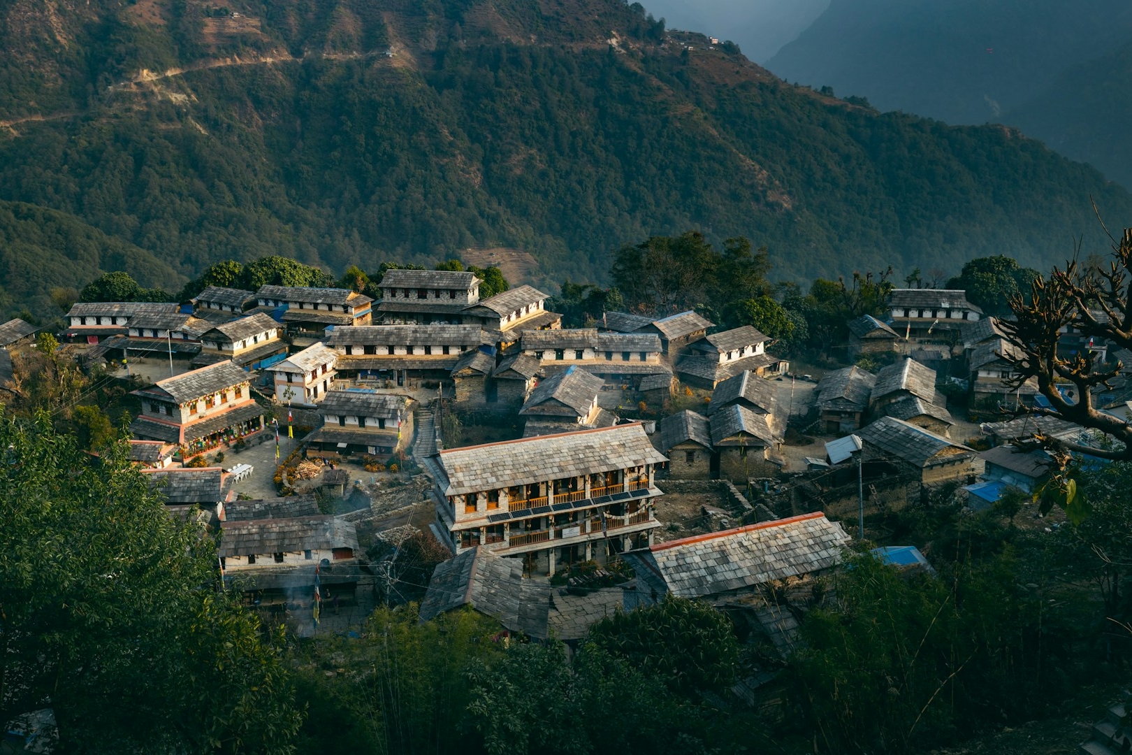 After breakfast, we leave the Bee Lodge & trek to Ker & Downey's Gurung Lodge. Today’s trek contours the side of the hill, with small ups and downs, passing through villages and farmland. Trek time to the Lodge is about 4 hours. You’ll reach the Gurung Lodge in time for lunch with optional afternoon hikes to the surrounding villages.